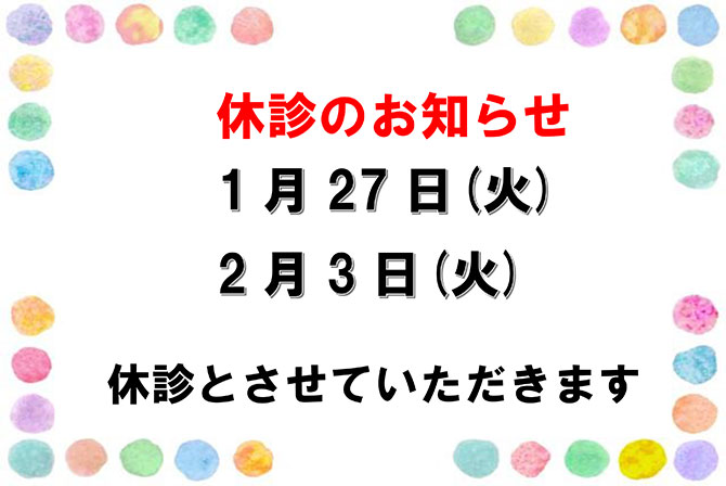 2026年1月・2月のお休み